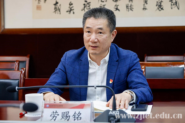 劳赐铭对钱塘区委、区政府长期以来对学校各项工作的大力支持和关心帮助表示感谢。他指出,学校正在努力朝着建设“中国特色、国内一流、国际知名”高水平职业大学奋勇前进,希望钱塘区委、区政府能够在高层次人才引进地方政策落实、产教融合大楼建设配套政策支持、学校校区建设等方面给予支持,助力学校高水平职业大学建设和培养地方经济社会发展所需技术技能人才;同时,双方要进一步加大合作力度,学校将根据区内企业人才需求,联合区内相关企业加大共同人才培养改革力度,协同推进区校在产业共兴、人才共育、平台共建、资源共享等方面的深度融合和联动发展。