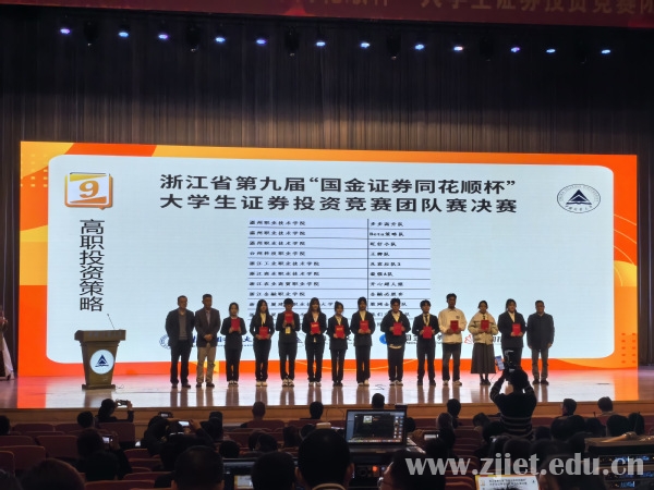 近日,由浙江省大学生科技竞赛委员会主办,浙江财经大学、浙江省大学生证券投资竞赛委员会承办,中国计量大学、国金证券股份有限公司、浙江核新同花顺网络信息股份有限公司协办的浙江省第九届“国金证券同花顺杯”大学生证券投资竞赛团队赛总决赛在中国计量大学落下帷幕,学校财务会计学院财富管理专业组成的参赛队伍取得一等奖1项、二等奖4项、三等奖2项的优异成绩。其中由杨依依老师指导,方嘉辉、陈常成、韩炜组成的团队获大赛一等奖。