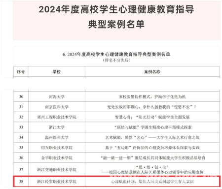 我校《心理赋能计划:聚焦人际关系问题学生育人案例》入选教育部2024年度高校学生心理健康教育指导典型案例