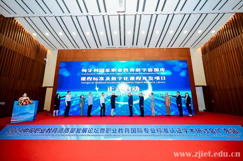 学校入选全国第一批“匈牙利国家职业教育数字资源库课程标准及数字化课程开发项目”建设单位,陈德泉受邀参加项目启动仪式并代表学校与英国国家学历学位评估认证中心中方理事会、欧中“一带一路”文化教育旅游和经贸发展委员会共同签署“中匈职业教育国际合作备忘录”。